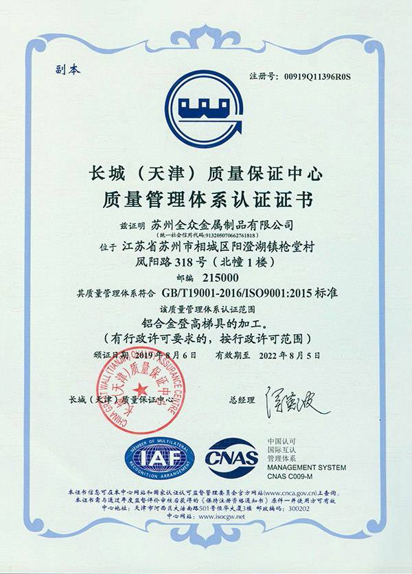 世界杯开户平台-官方入口成立于2013年3月,注册资本500万元,是一家从事铝合金登高工具生产及销售的企业,世界杯开户平台-官方入口坐落于“人间天堂”苏州市,毗邻阳澄湖度假区,交通十分便利。在铝合金产品加工有着很深厚的底蕴和丰富的经验。同时是铝合金登高产品解决方案的供应商。公司通过ISO9001质量管理体系认证,将公司发展的步伐向前迈进一步。